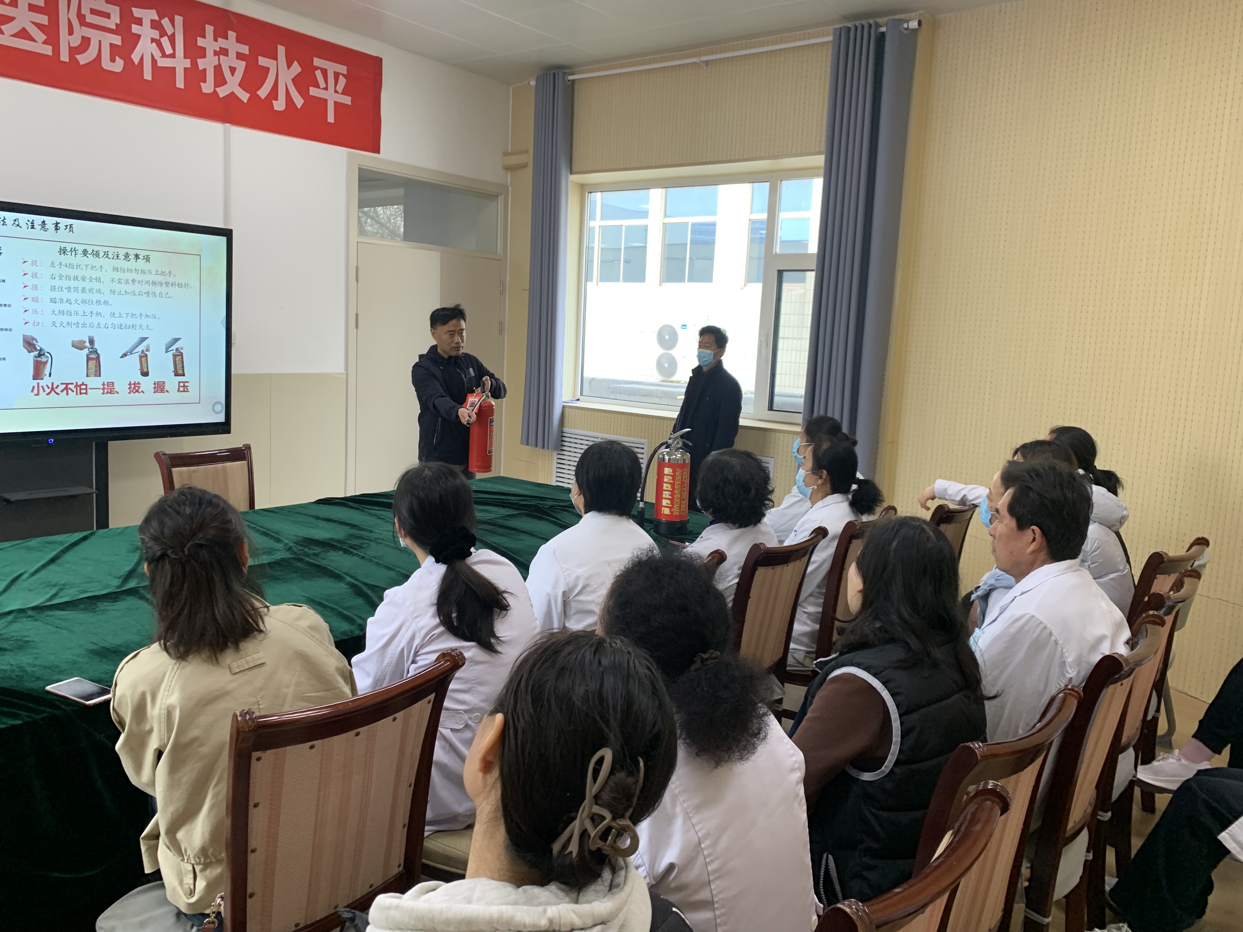 4月3日,消防管理中心在西校区校医院2楼会议室,对校医院全体工作及医护人员进行了一堂生动的消防安全知识普及讲座,并组织参训人员进行了仿真灭火器的实操练习,从细从实提升了医护人员消防安全责任意识,对初期灭火能力的提升起到了极大地推动作用。