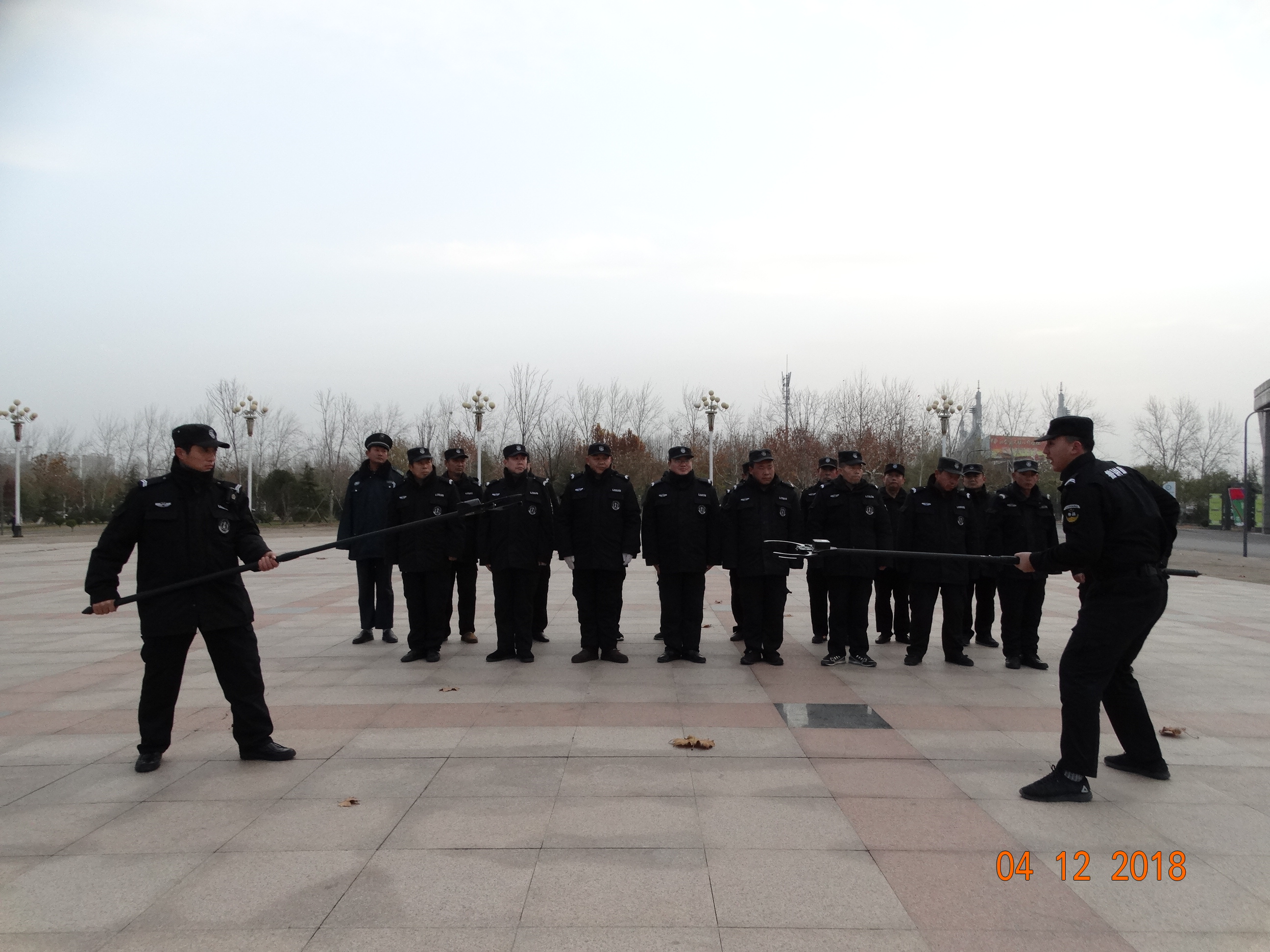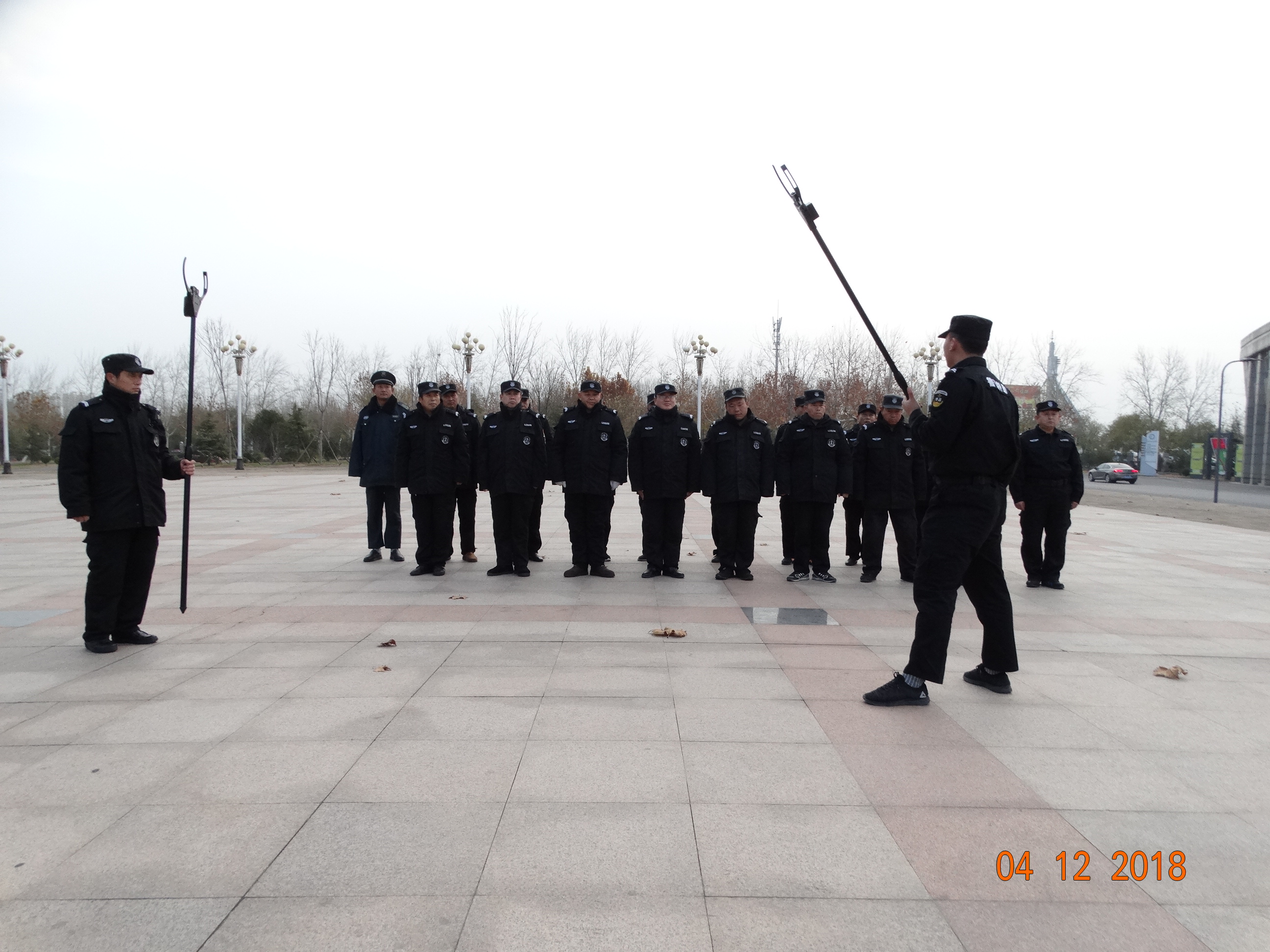 本次训练,从实际出发,以贴近实战为目标。训练科目主要是针对校园内处置突发性群体事件的盾牌防护、防暴叉使用、交叉配合、实战队形等内容。在训练中,训练教官对每一个实战队形的就位推进、攻击状态、器材操作要领等进行了反复讲解和演示。参训保安认真听讲,发扬不畏低温寒冷、吃苦耐劳的优良作风,严格遵守纪律,刻苦练习,牢牢的掌握动作要领。