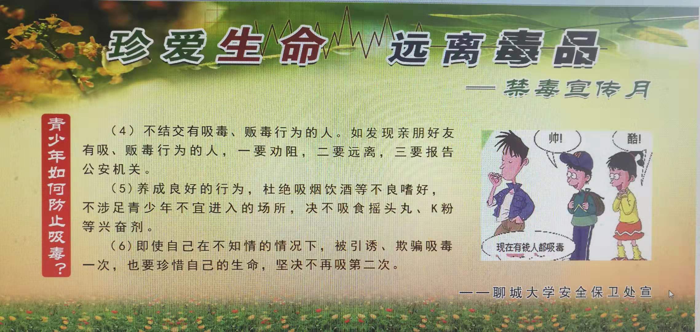 此次宣传活动是全面落实省教育厅、省禁毒委员会办公室《关于加强全省高等学校毒品预防教育工作的通知》精神。开展毒品预防教育活动,是全面贯彻落实习近平总书记敢于禁毒工作的主要重要批示指示精神,全面落实省委省政府《关于进一步加强禁毒工作的实施意见》和《禁毒法》、《山东省禁毒条例》相关规定,最大限度遏制毒品蔓延,使广大师生在教育活动中普遍掌握禁毒知识、提升安全意识,切实增强学生的身心健康,维护社会稳定。