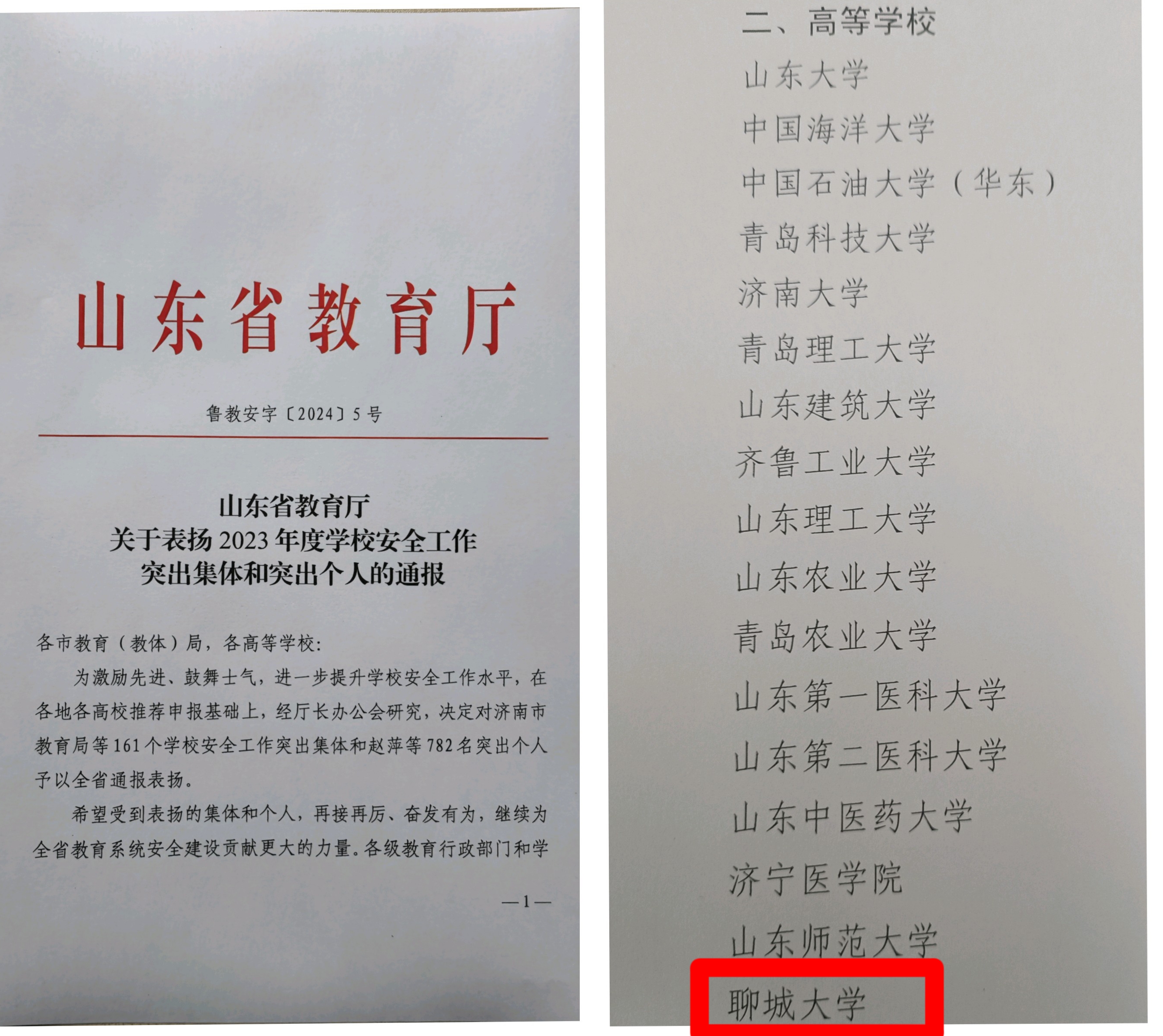 近日,山东省教育厅公布2023年度山东省学校安全工作突出集体和突出个人名单。我校获“山东省学校安全工作突出集体”,安全日韩欧美一区二区三区丁兆礼获“山东省学校安全工作突出个人”。